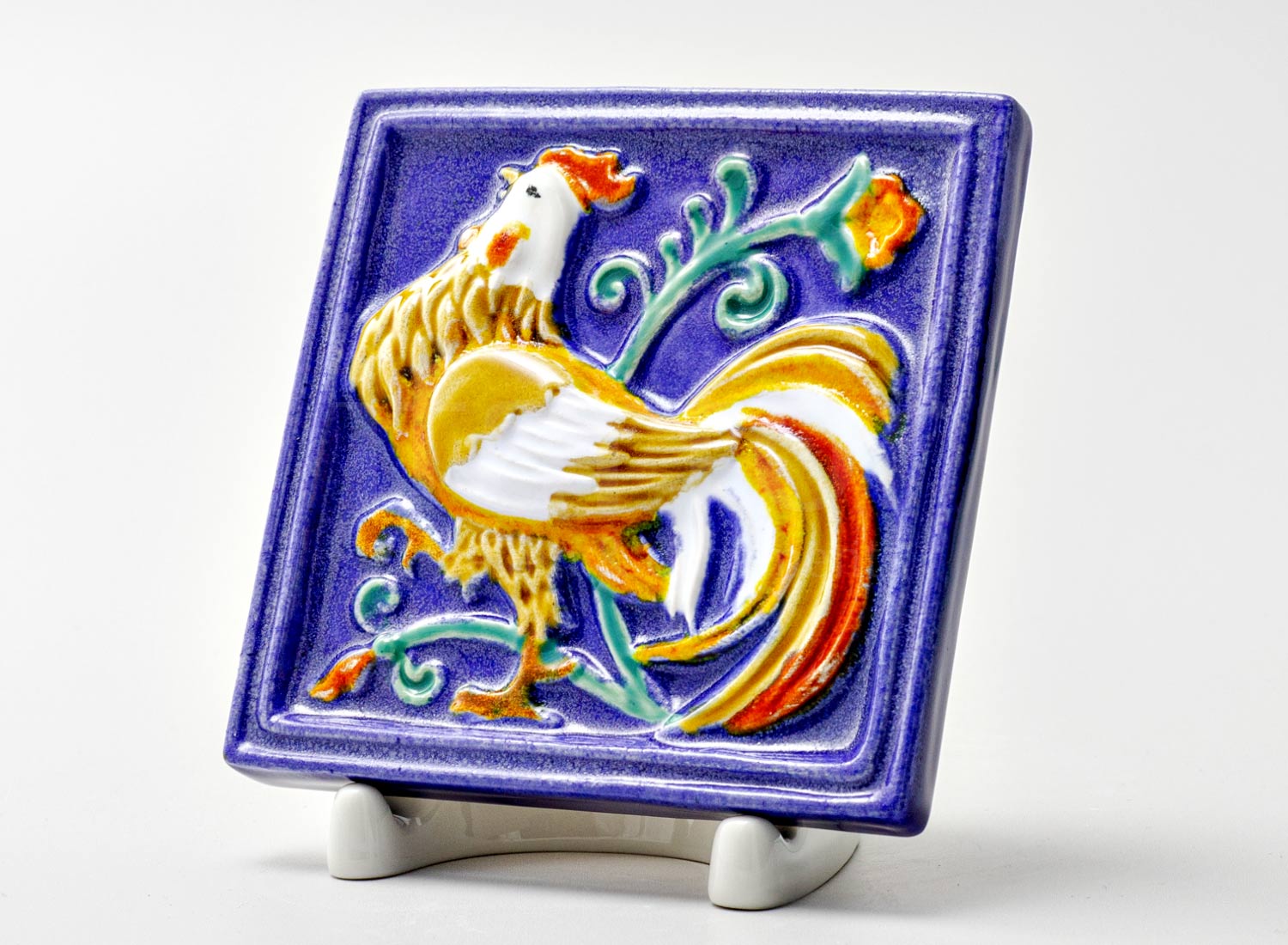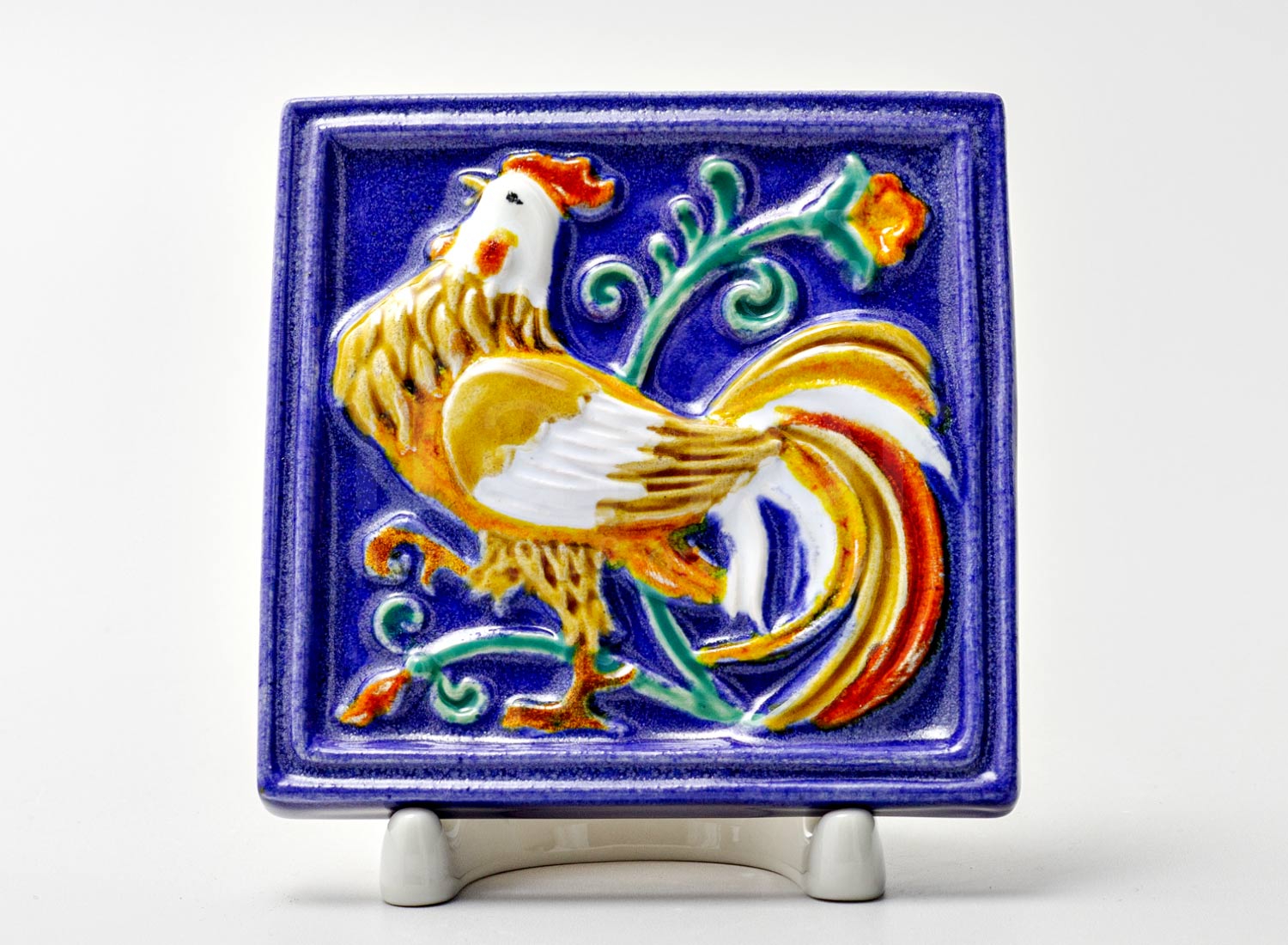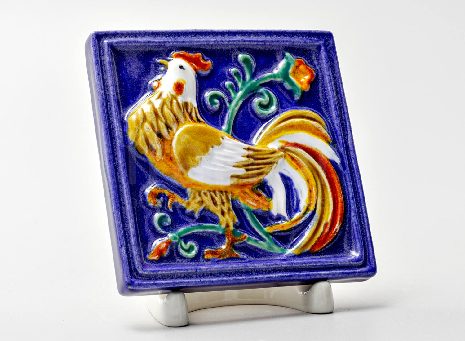 Изразец малый «Петух 1 синий»
