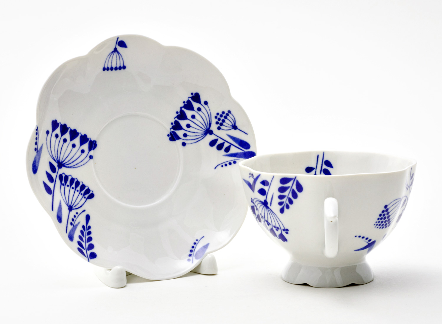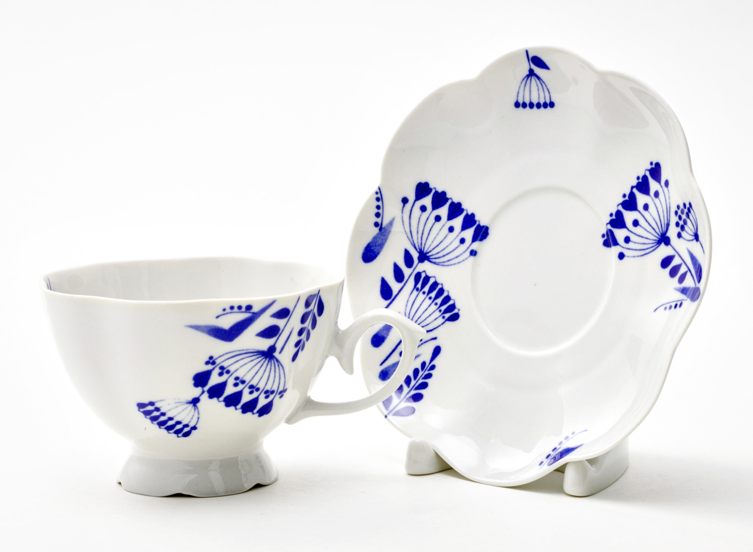 Чашка с блюдцем чайная «Гжель тысячелистник 2»