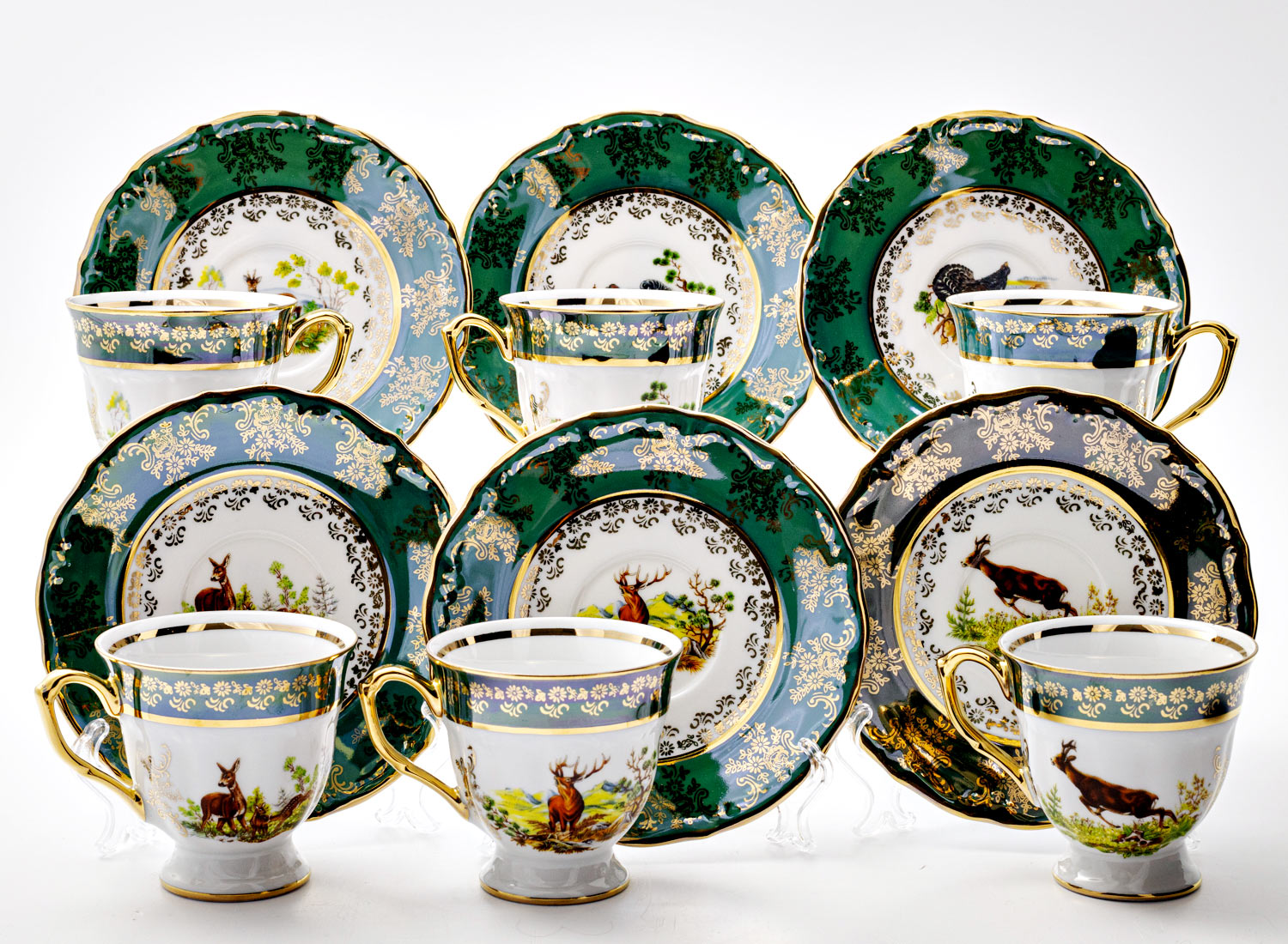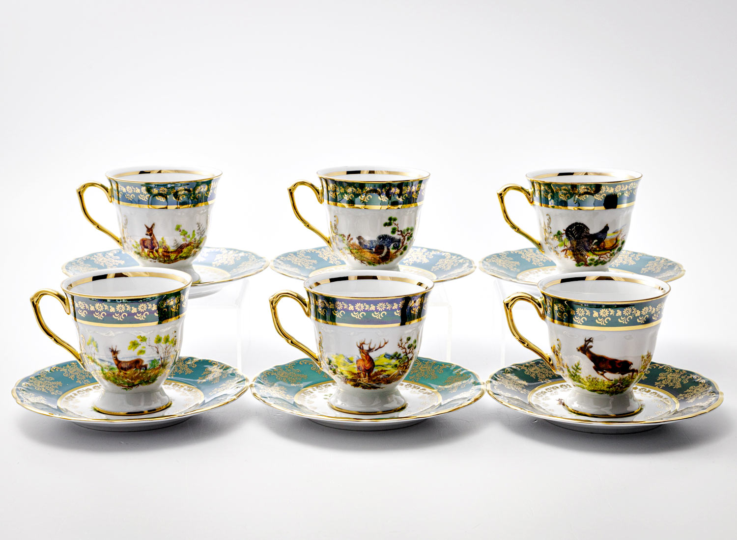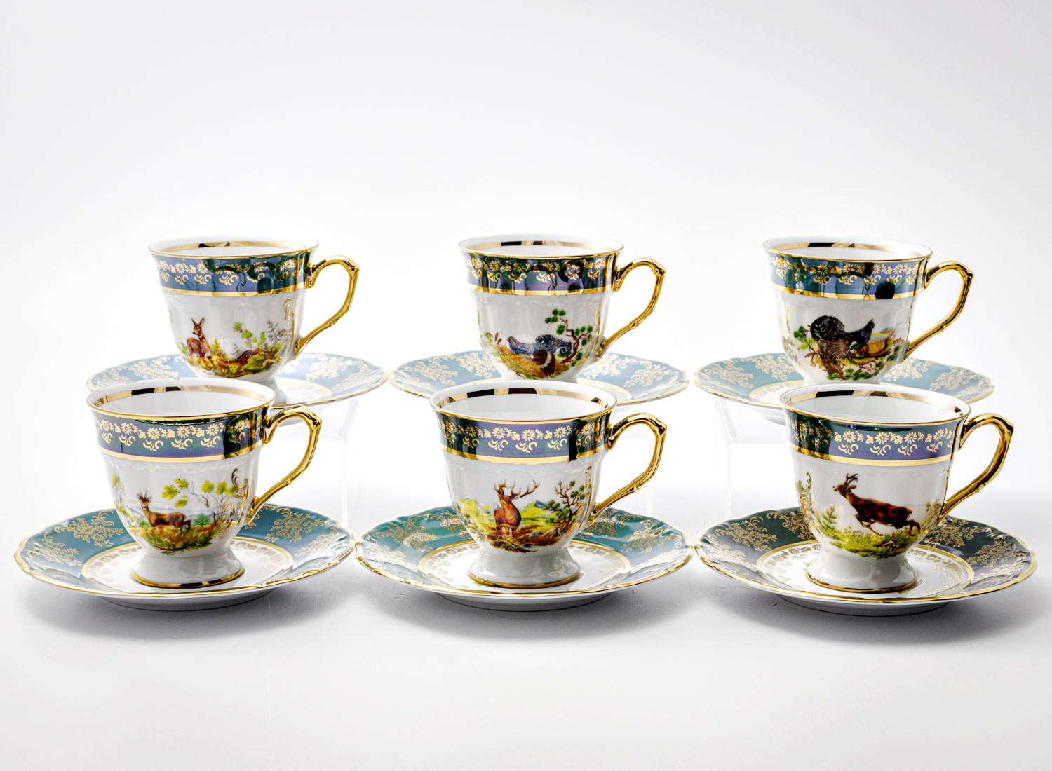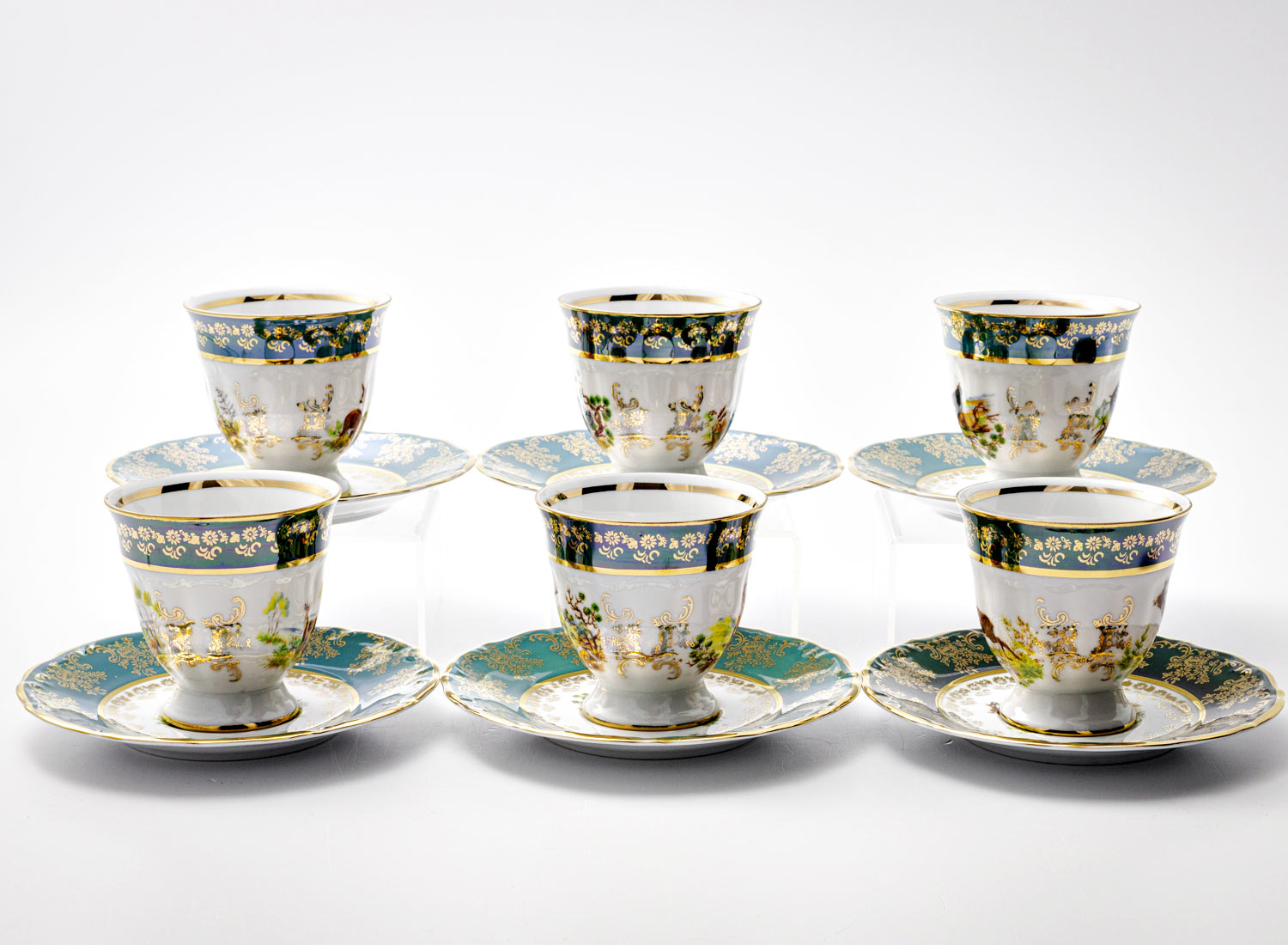 Набор чашек с блюдцами кофейный «Охота Зеленая»