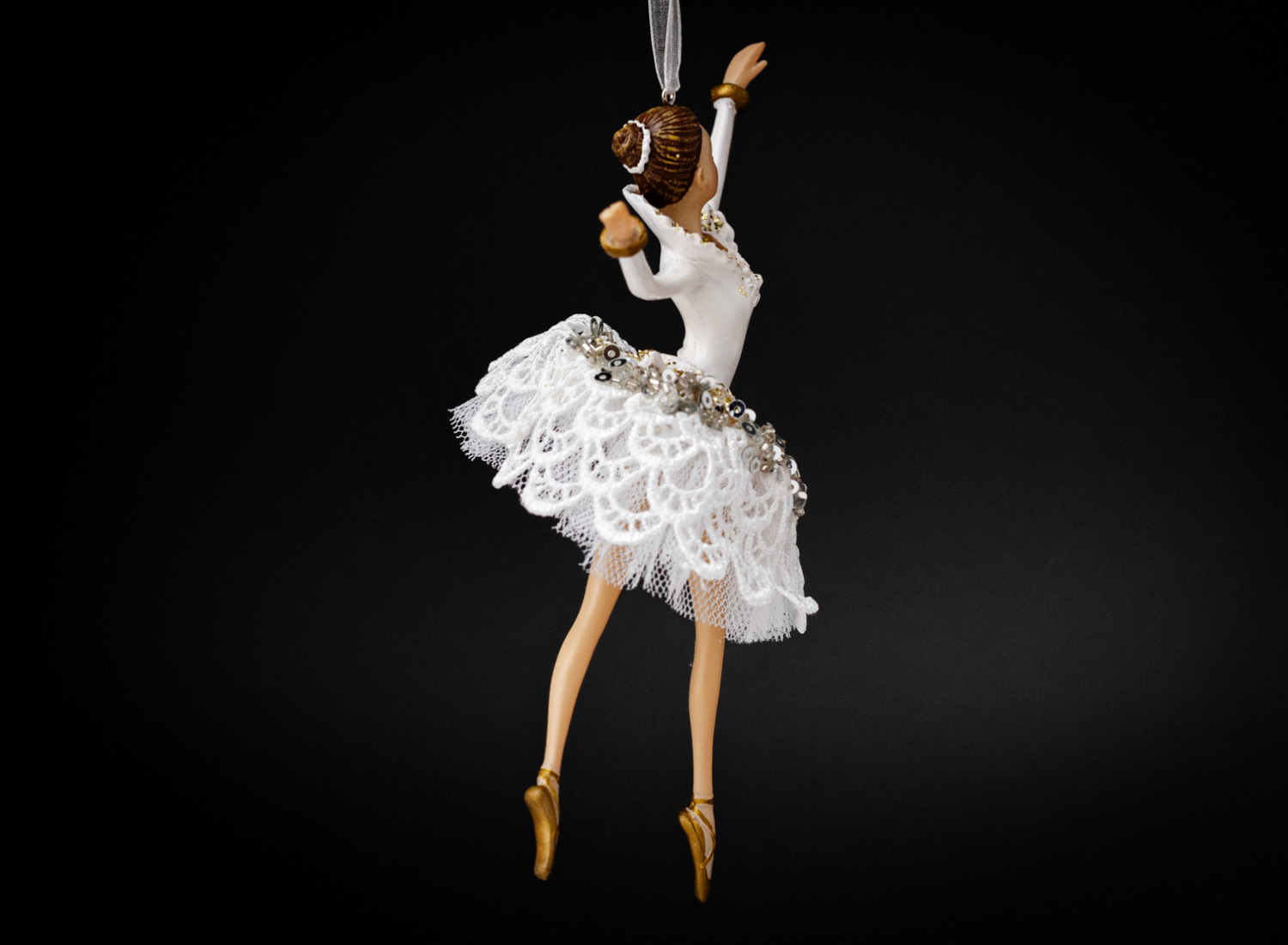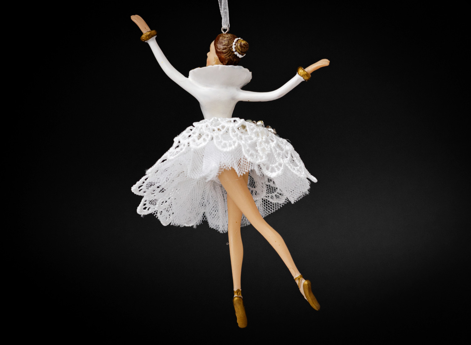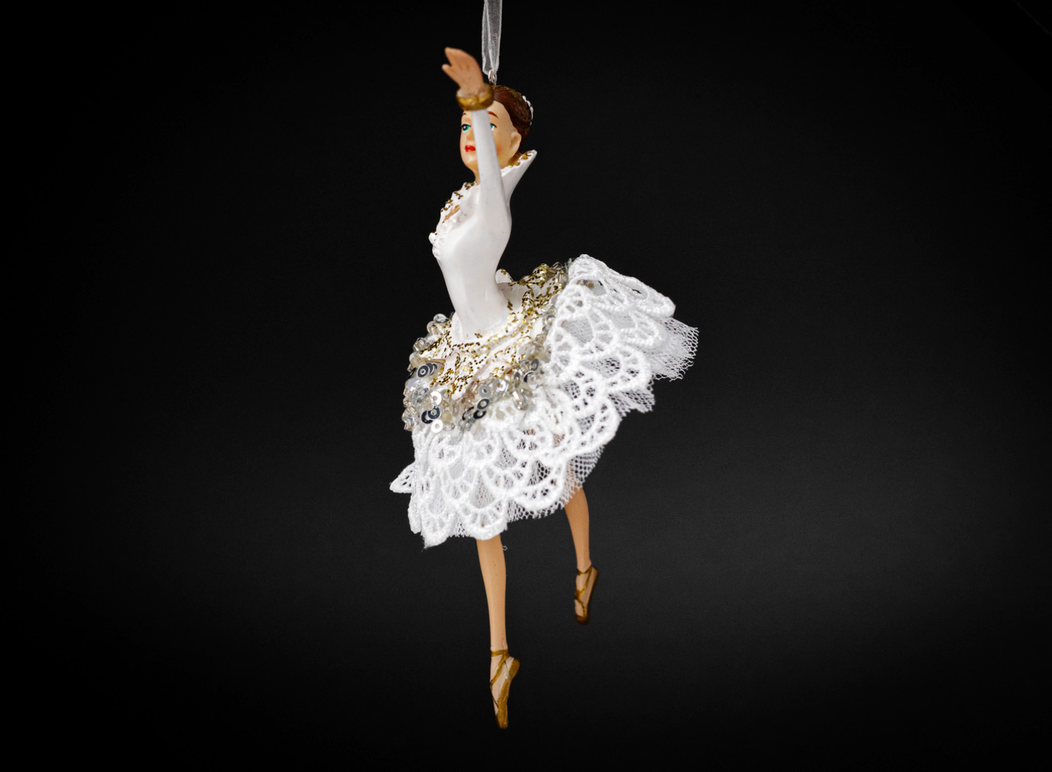 Елочная игрушка «Балерина в белом платье с кружевами 1»